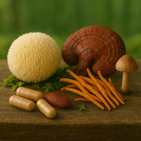 A bundle of lions mane , cordyceps , turkey tail , reishi and chaga
